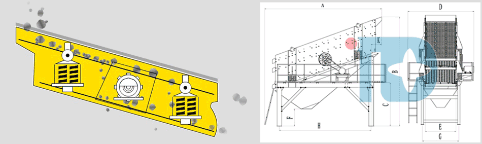 YK系列振動式分選篩的電路采用反接制動原理連接,使振動篩能安全、平穩地實現停機,使篩床快速躍過共振區,減少V帶受力時間,延長了V帶的使用壽命。